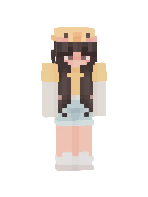 Skin Minecraft stylowej dziewczyny w różowym swetrze i żółtej kurtce, z długimi włosami i kolorowymi skarpetkami, idealny na serwery!