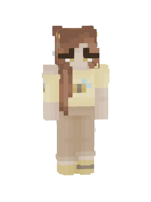 Skin w Minecraft przedstawia urocza dziewczynę w szarej bluzie, jasnych spodniach oraz z długimi brązowymi włosami, idealny dla miłośniczek stylu!