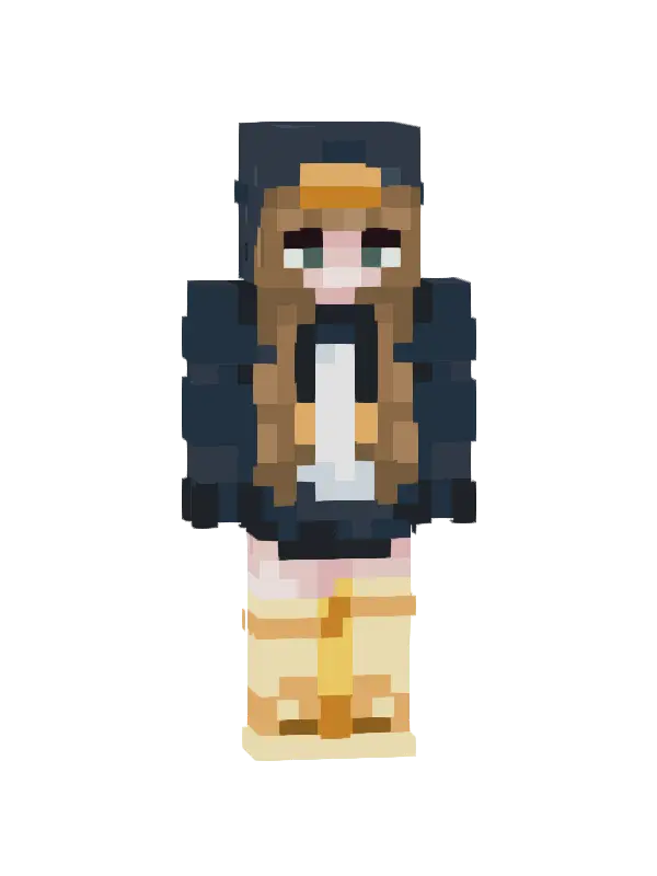 Skin uroczej dziewczyny w Minecraft, ubranej w białą bluzkę i spódniczkę, z długimi brązowymi włosami i różowymi akcentami. Idealny dla fanek kawaii!