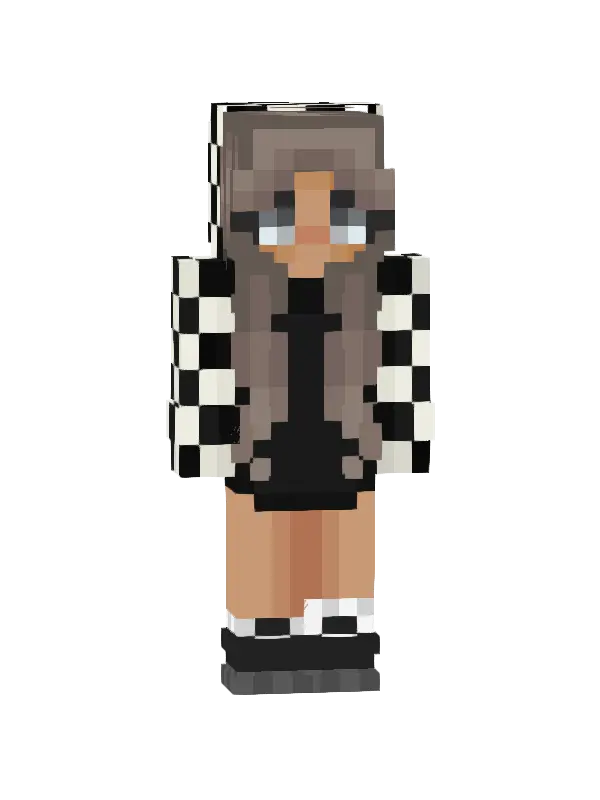 Skin Minecraft z długimi czarnymi włosami, brązową bluzą i czarnymi spodniami, idealny do pełnej stylizacji w grze. Zostań modnym graczem!