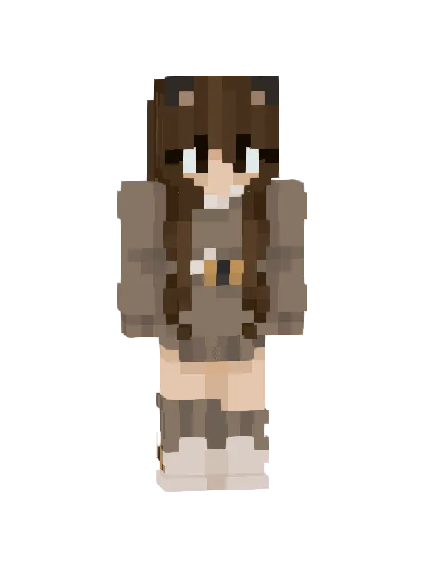 Skin uroczej niedźwiedzicy w Minecraft, z brązowym futrem, uroczo wplecionymi warkoczykami i białymi skarpetkami, idealny dla miłośników zwierząt!