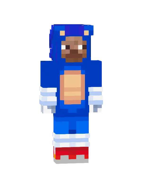 Skin Sonic'a do Minecraft to szybki bohater z niebieskimi włosami, pomarańczowym brzuszkiem i kultowymi czerwonymi butami. Świetny wybór dla fanów!