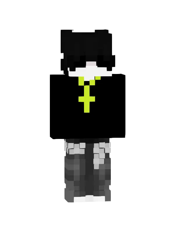 Skin Minecraft przedstawiający postać w białym t-shirtcie z logo słonecznika, niebieskich ogrodniczkach i białych sneakersach. Idealny na przygody!