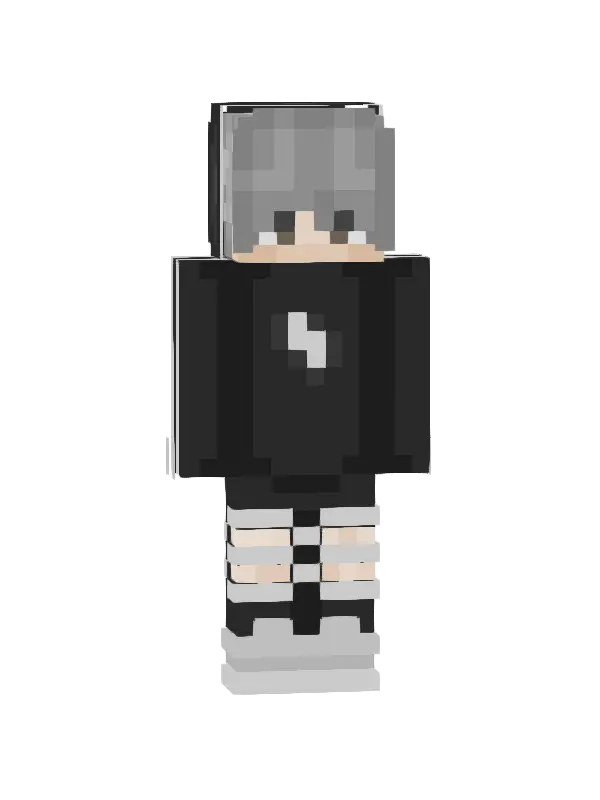 Skin Minecraft z postacią w biało-czarnym hoodie oraz czarnych spodniach. Idealny dla graczy ceniących styl i wygodę w pixelowym świecie!