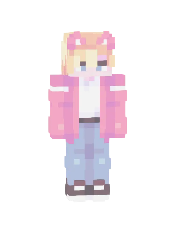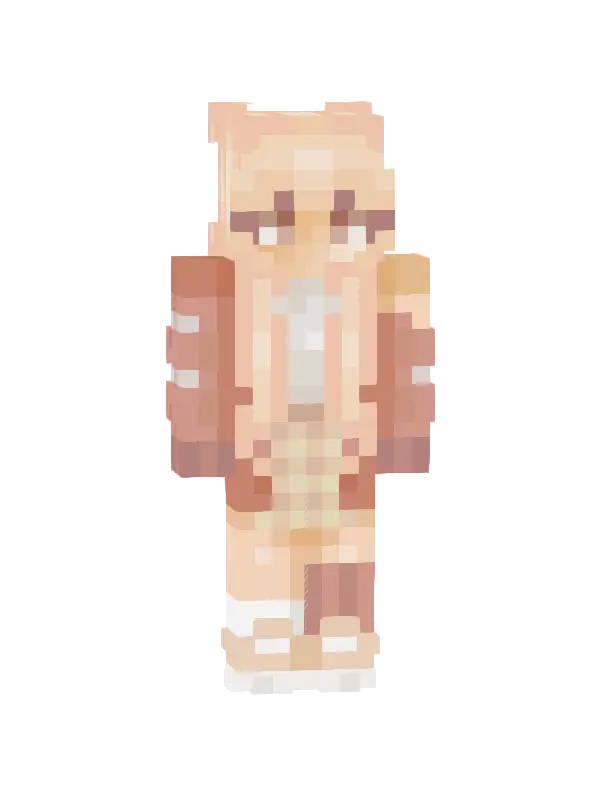 Skin modnej postaci Minecraft z długimi brązowymi włosami, czarną bluzą, spodniami w stylu ulicznym i białymi butami, idealny do wyróżnienia się w grze.