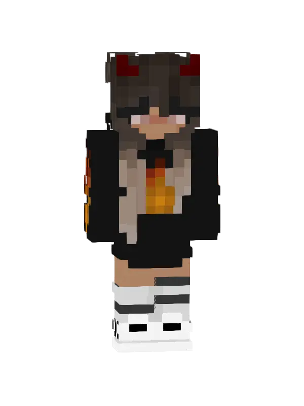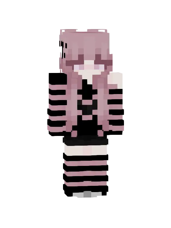 Skin Minecraft z czerwoną fryzurą, białą bluzką i czarną spódnicą w paski. Idealny dla fanek stylu ulicznego, wyróżnij się w grze!