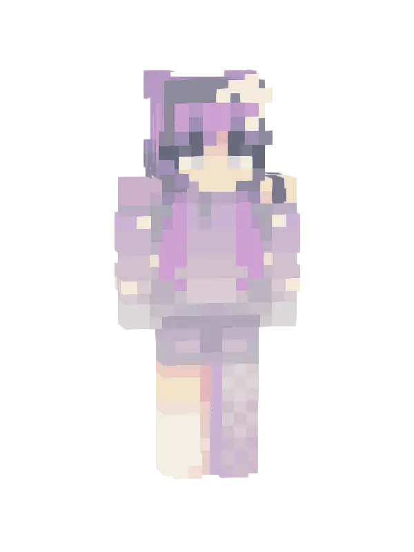 Skin Kawaii kotka w Minecraft to urocza postać z jasnymi szaro-fioletowymi ubraniami, słodkimi kokardkami i długimi włosami. Idealny dla miłośniczek stylu!