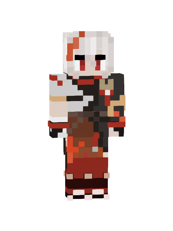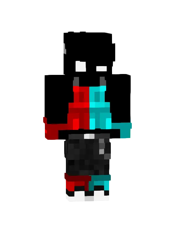 Skin wojownika Minecraft z czerwonymi włosami i muskularną sylwetką, ubrany w czarne spodnie i bluzę, świetny dla miłośników akcji!