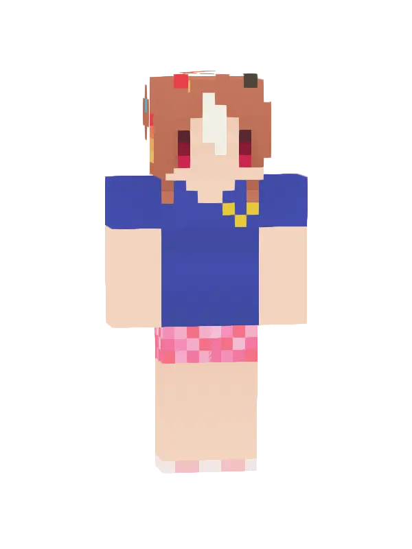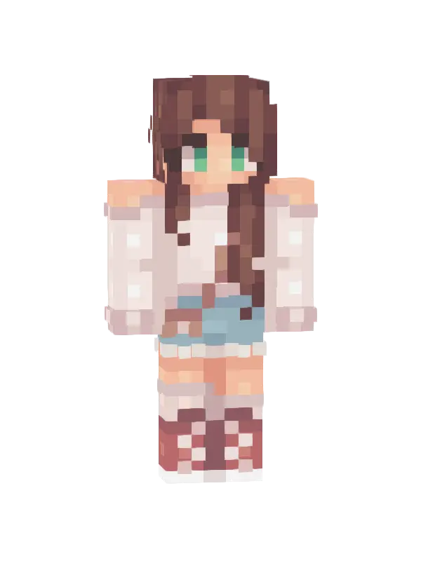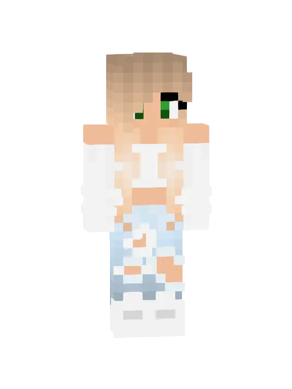 Skin dziewczyny w Minecraft w białej koszulce, niebieskich szortach i różowych trampkach. Idealny do personalizacji w grze! Wyróżnij się stylem!