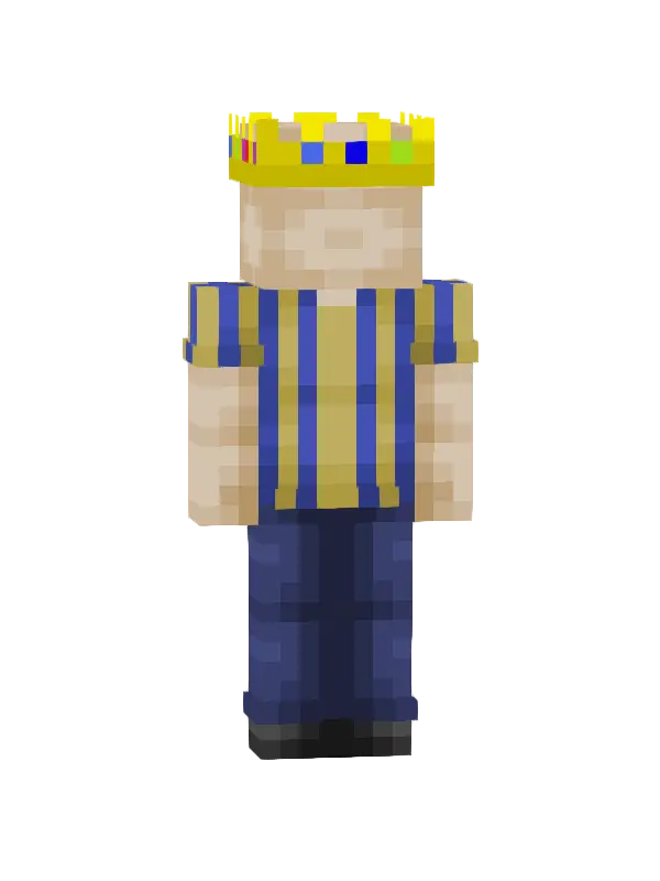 Skin Króla Minecraft z koroną, w niebiesko-żółtej koszulce i dżinsach. Idealny dla tych, którzy pragną rządzić w grze! Wyróżnij się w Minecraft!