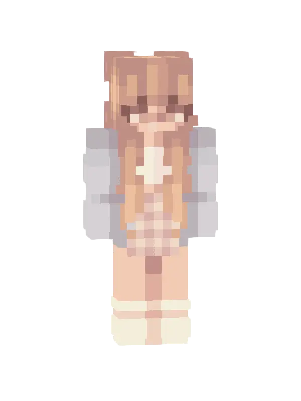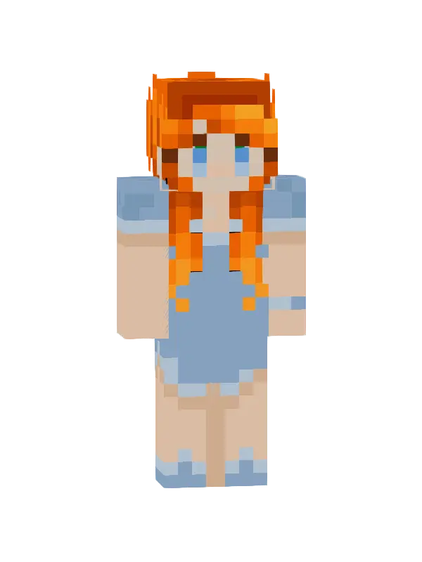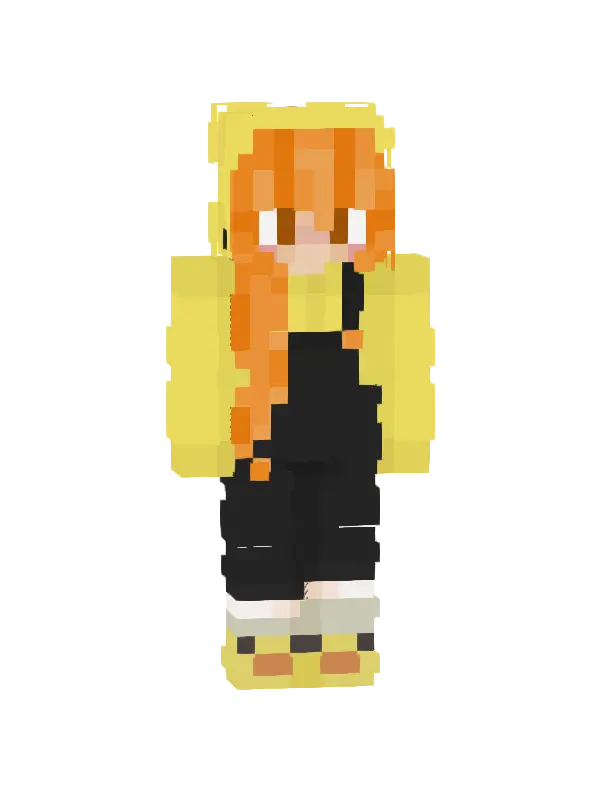 Skin uroczej postaci Minecraft z pomarańczowymi włosami, białą bluzą i różowymi szortami. Idealny wybór dla fanów stylu kawaii!
