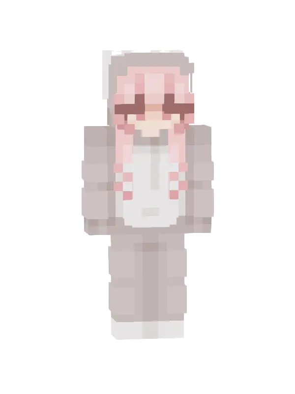 Skin uroczej dziewczyny w Minecraft z różową bluzką, długimi włosami i kawaii akcesoriami. Idealny dla fanów słodkich postaci w grze!
