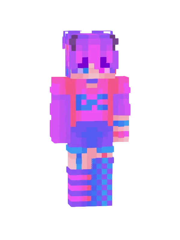 Skin Panny Lodu Minecraft to urokliwy stwór z długimi niebieskimi włosami, różową czapką i stylowym topem, idealny dla miłośników magii i przygód!