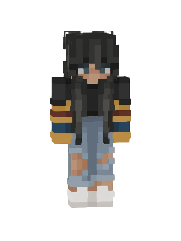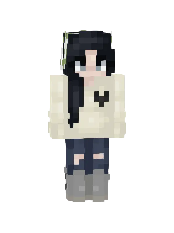 Skin Minecraft uroczej postaci z jasnymi włosami, czarnym swetrem i szarymi spodniami. Idealny do wyróżnienia się w grze!