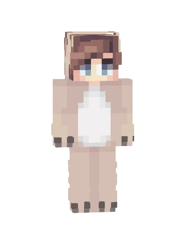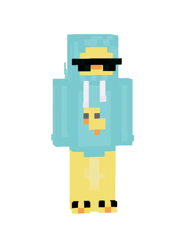 Skin Żółtego misia w Minecraft to urocza postać w żółtej bluzie z kapturem i okularach, zestawiona z czarnymi spodniami i białymi butami. Idealny dla fanów zwierząt!