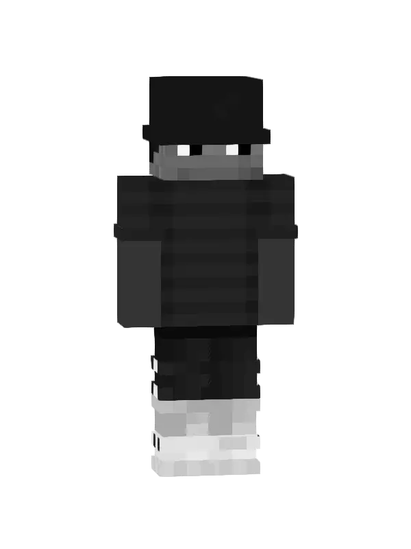 Skin Minecrafta w stylu miejskiego hipstera, z czarnym kapeluszem, torbą na ramieniu, czarną koszulą i szarymi spodniami. Idealny dla modnych graczy!