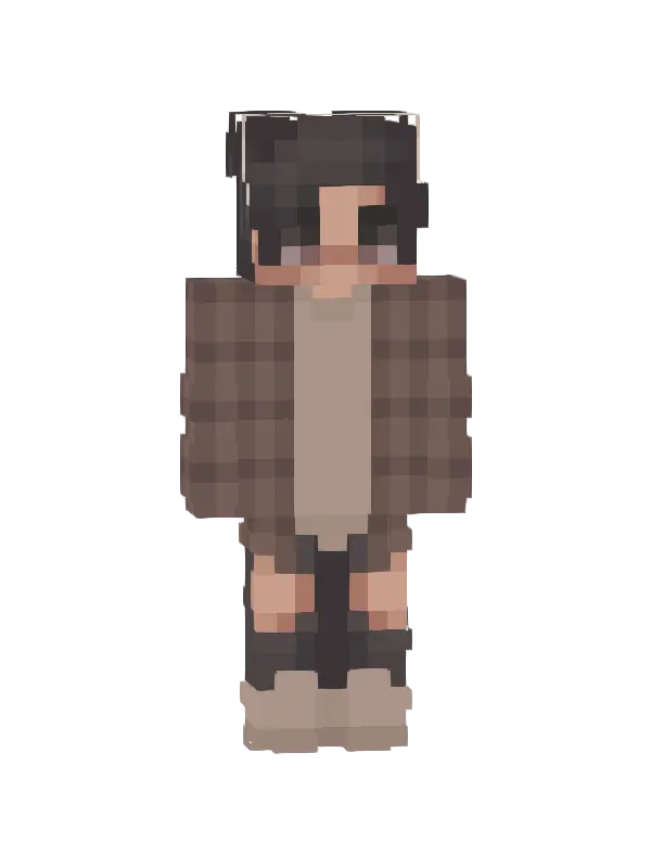 Skin Minecraft z modnym brązowym swetrem i szarymi spodniami, dopełniony białymi sneakersami. Idealny wybór dla stylowych graczy!