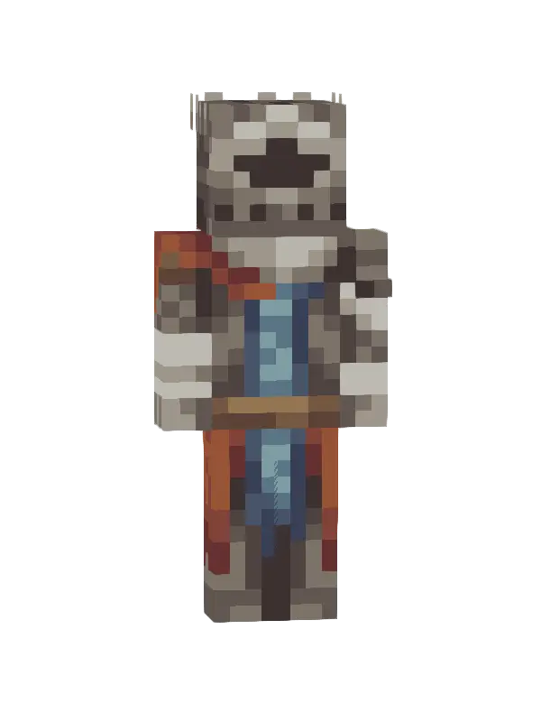 Skin Minecraft owiązany na tajemniczego wojownika, z niebieskim płaszczem, złotymi akcentami i zbroją. Idealny dla fanów przygód i walki!