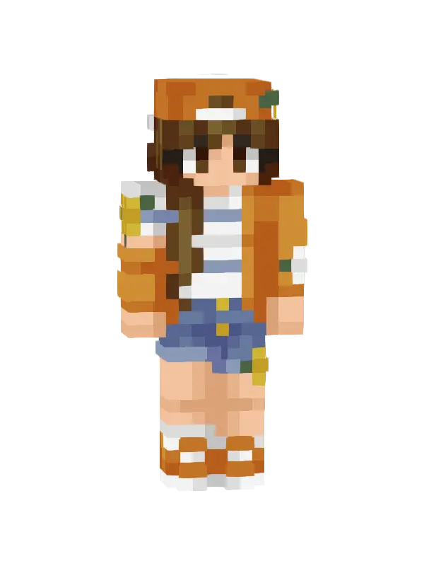 Skin Modnej Dziewczyny w Minecraft to stylowy wygląd z pomarańczowym t-shirtem, jasnymi dżinsami i sportowymi butami. Idealny na przygody w grze!