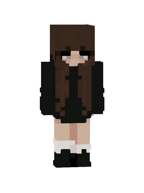 Skin dziewczyny w Minecraft charakteryzuje się długimi brązowymi włosami, niebieską kurtką oraz czarną sukienką. Idealny wybór dla stylowych graczy!