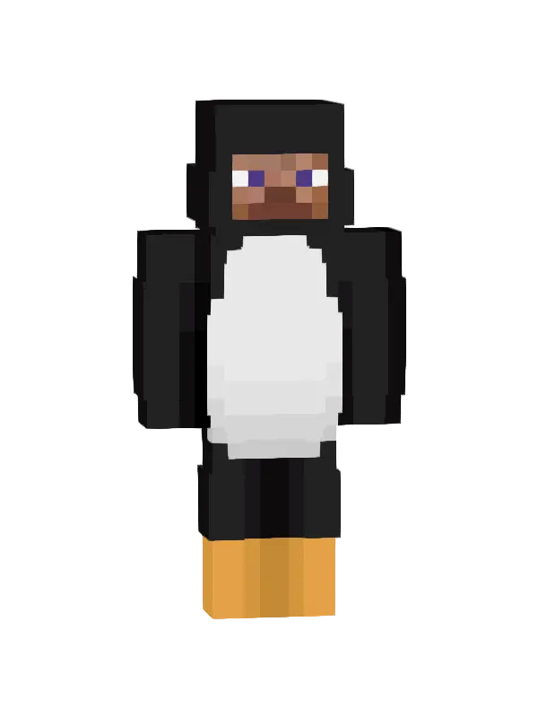 Skin Pingwina Minecraft to uroczy strój z czarnym tułowiem, białym brzuszkiem, niebieskimi oczami i pomarańczowym noskiem. Idealny do zabawy i wyróżnienia!