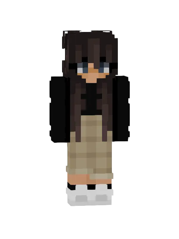 Skin do Minecraft przedstawia stylową postać w białej czapce, białej koszulce i czarnych ogrodniczkach. Idealny dla modnych graczy!