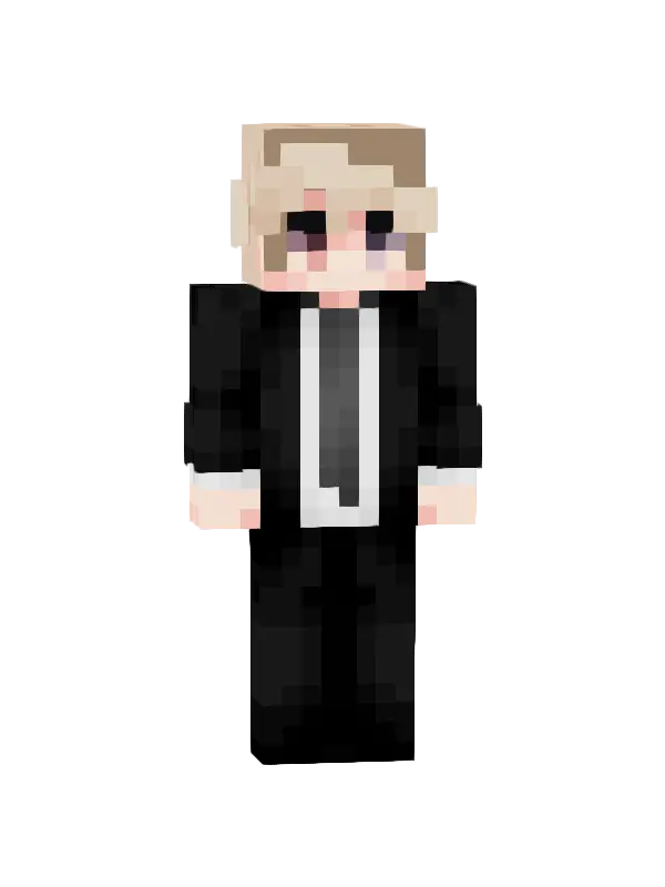 Skin Minecraft z czerwoną fryzurą, szarym garniturem i czarnym krawatem. Idealny dla fanów eleganckiego stylu, wyróżni cię w grze!