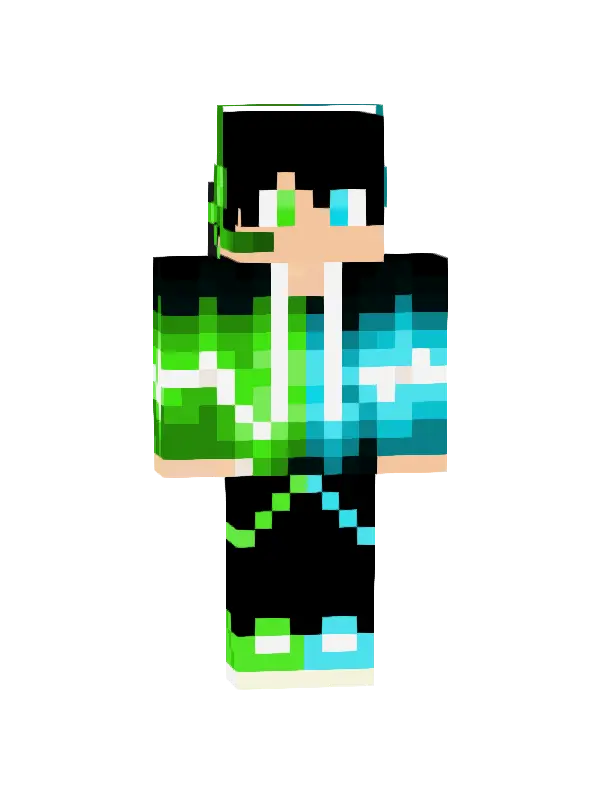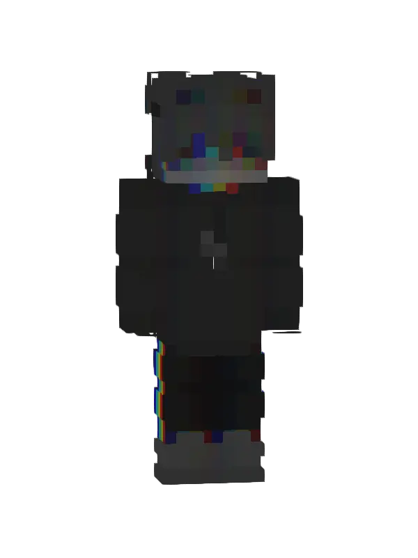 Skin Minecraft z ciemnym kapturem i kolorowymi detalami, idealny dla fanów tajemniczych stylizacji. Stwórz niepowtarzalny klimat w grze!