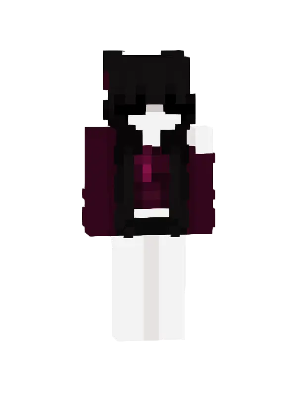 Skin Królowej w Minecraft to stylowy wygląd z czerwoną fryzurą i złotą koroną. Ubrana w czarną kurtkę oraz dżinsy, idealny dla kreatywnych graczy!