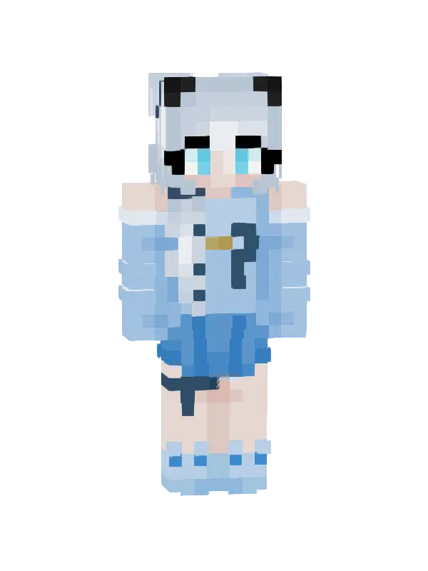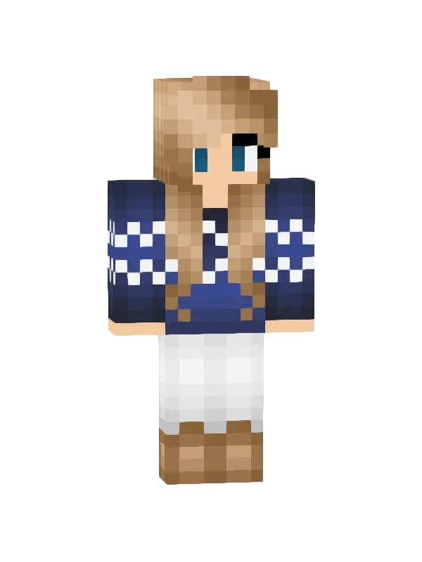 Skin sympatycznej postaci Minecraft o niebieskich włosach i miłym uśmiechu. Ubrany w błękitny strój z guzikami, idealny dla graczy ceniących urok!