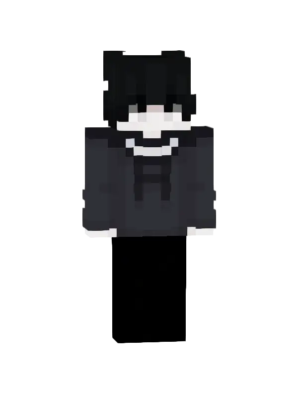 Skin Minecraft z czarnymi włosami i brązowymi oczami, ubrane w czerwono-czarne paski i czarne ogrodniczki. Idealny dla fanów stylu streetwear!