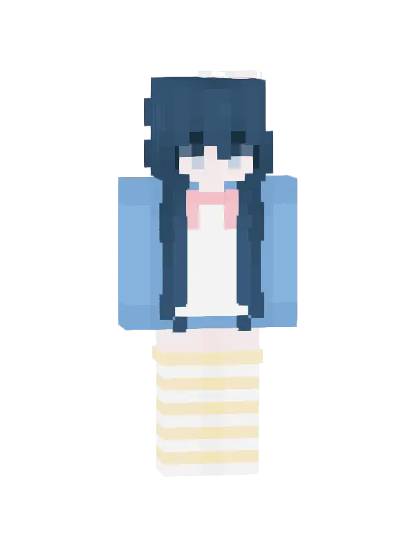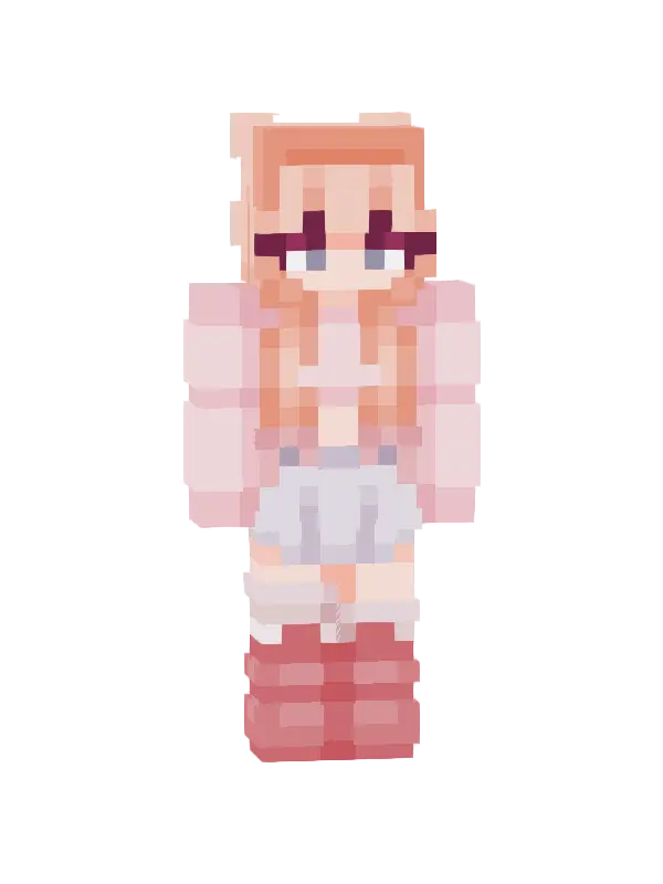 Skin Minecraft uroczej postaci z różowymi włosami i kolorowymi szelkami. Idealny dla fanów kawaii stylu, wyróżni się w każdej przygodzie!