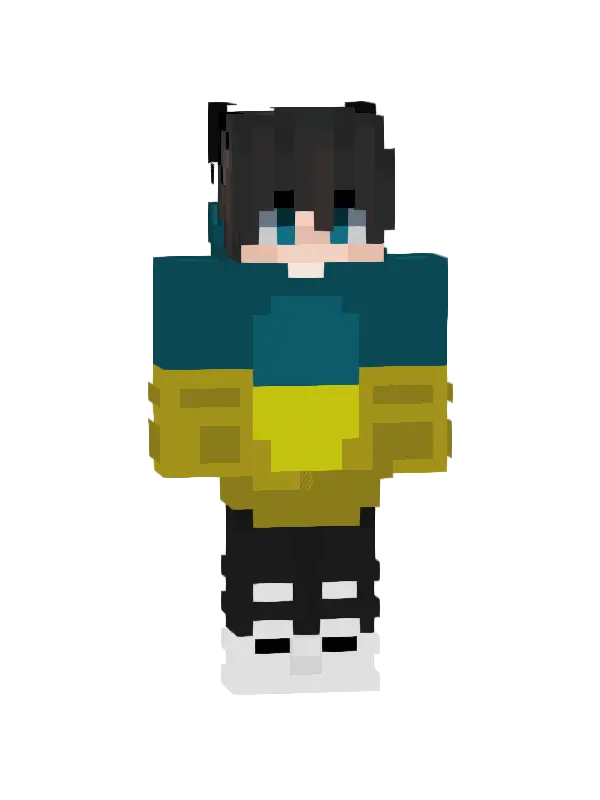 Skin Uroczej Postaci Minecraft to dziewczyna w niebieskiej bluzie z zabawnym wzorem, spodniami w kratkę i białymi trampkami. Idealna dla fanek!
