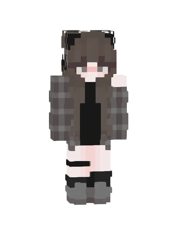 Skin uroczej dziewczyny w Minecraft wyróżnia się długimi brązowymi włosami, czarnym topem i modnymi szarymi spodniami. Idealny do zabawy w grze!