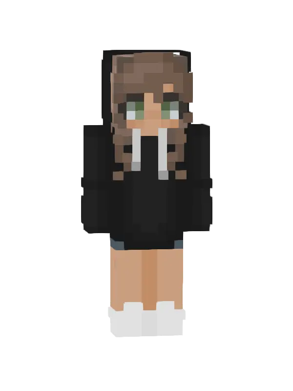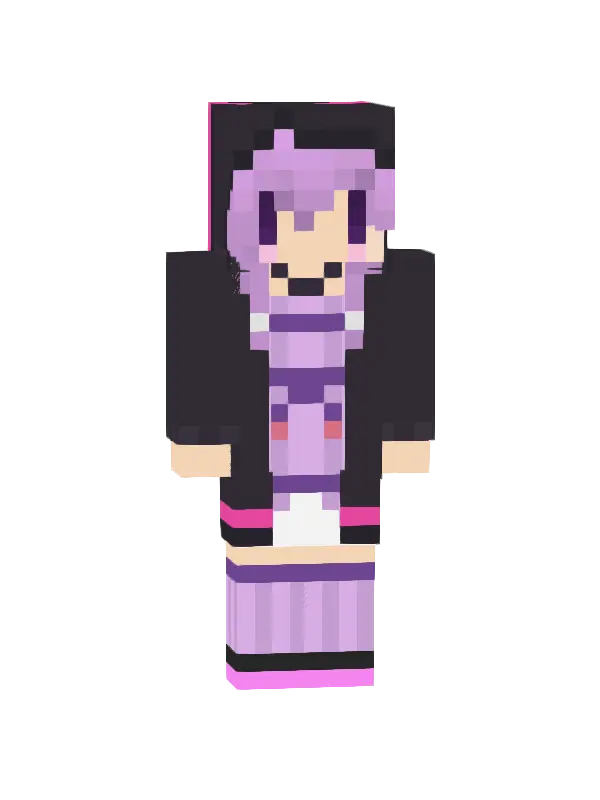Skin Minecraft przedstawia postać w eleganckim czarnym płaszczu, czerwonym akcentem i stylowej spódnicy. Urokliwe brązowe włosy dopełniają ten modny wygląd, idealny dla graczy!
