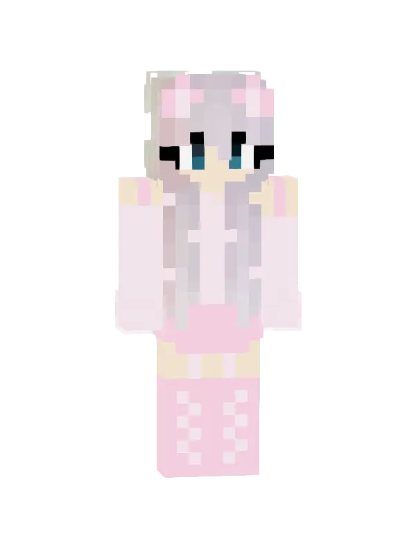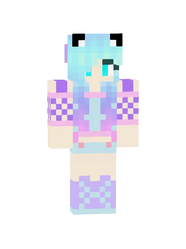 Skin Kawaii Minecraft to urocza postać z błękitnymi włosami, w różowej sukience w kratkę oraz zanjowymi detalami. Idealny do personalizacji w grze!