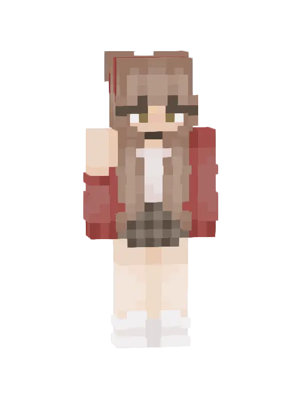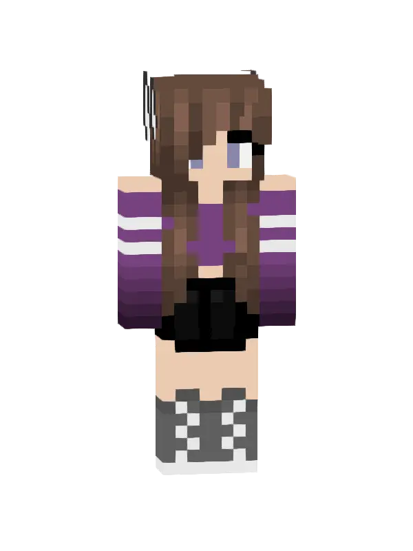 Skin dziewczyny w Minecraft z długimi, brązowymi włosami i zielonymi rękawami. Ubrana w czarną koszulkę oraz spodnie w stylu streetwear. Idealna do wyróżnienia się!