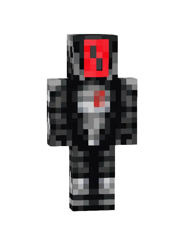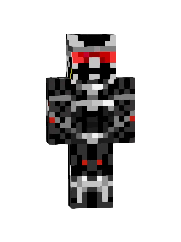 Skin Czerwonego Wojownika Minecraft to postać w czarnej zbroi z czerwonymi akcentami, z charakterystycznym szalem i mrocznym wyglądem, idealny dla fanów przygód!