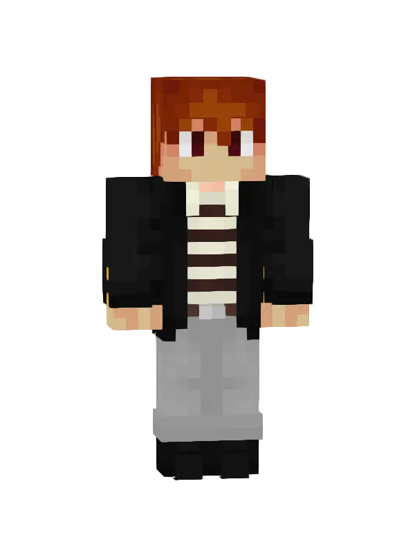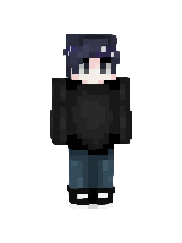 Skin Minecraft stylowego gracza z czarnymi i białymi włosami, czarną koszulką i fioletowymi spodniami. Idealny do wyróżnienia się w grze!