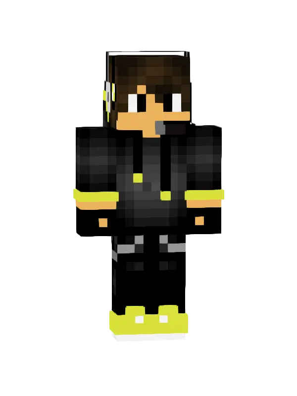 Skin Minecraft w stylu sportowym, z czarnym T-shirtem i niebieskimi detalami, uzupełniony o białe sportowe buty. Idealny dla graczy ceniących styl!