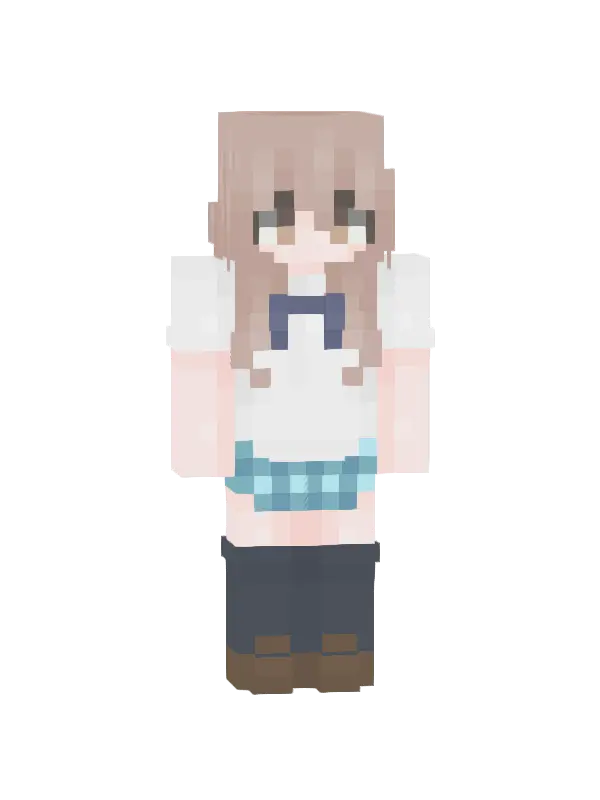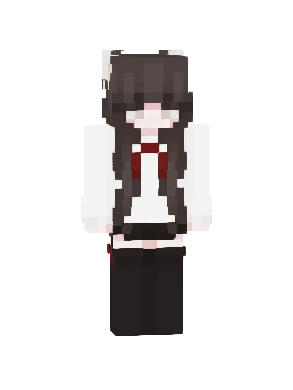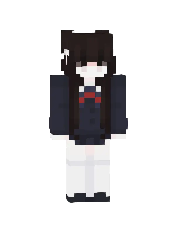Skin dziewczyny do Minecraft w eleganckim szkolnym uniformie, z szarymi włosami i białymi skarpetkami. Idealny wybór dla miłośników stylu!