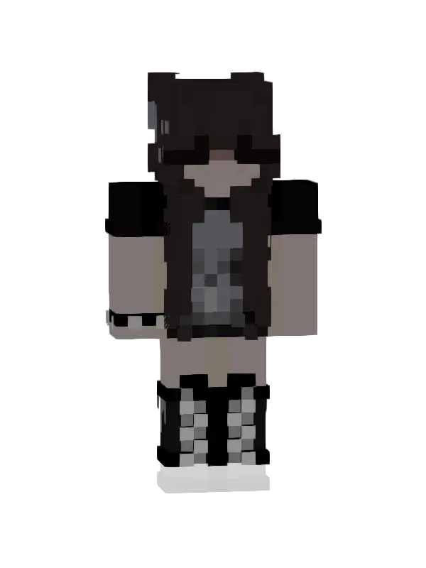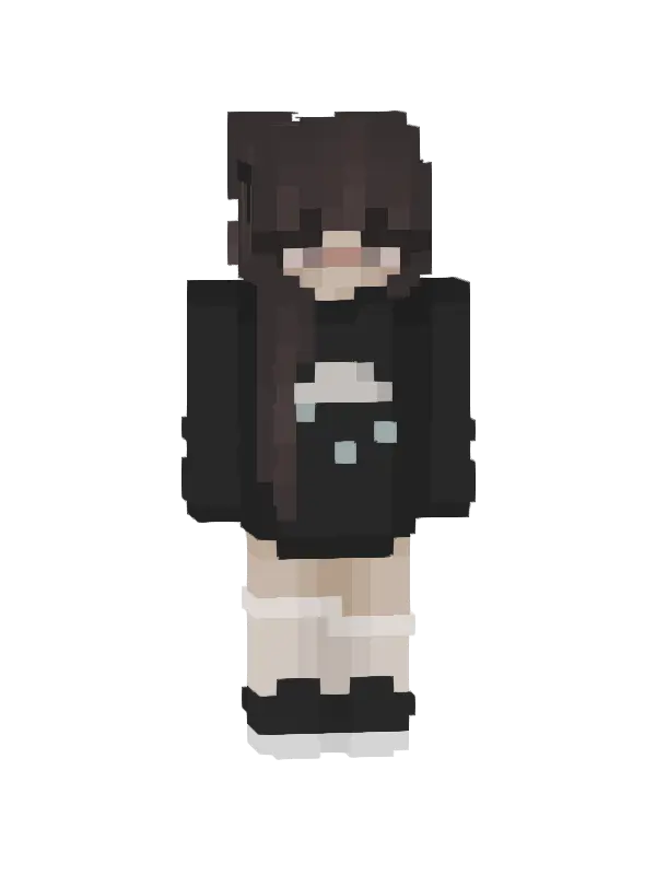 Skin tajemniczej postaci w Minecraft, stylizowany na modny wygląd: czarna bluza, krótkie spodenki i długie skarpetki, idealny do wyrażenia siebie!