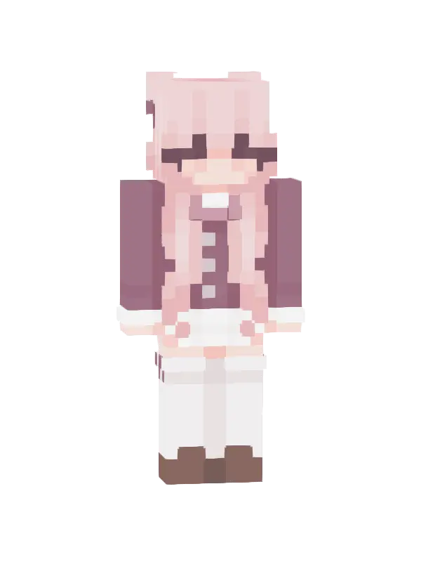 Skin Kawaii dziewczyny w Minecraft, z różowymi włosami, białym topem, beżowymi szortami i zielonymi detalami. Idealny do wyróżnienia się w grze!