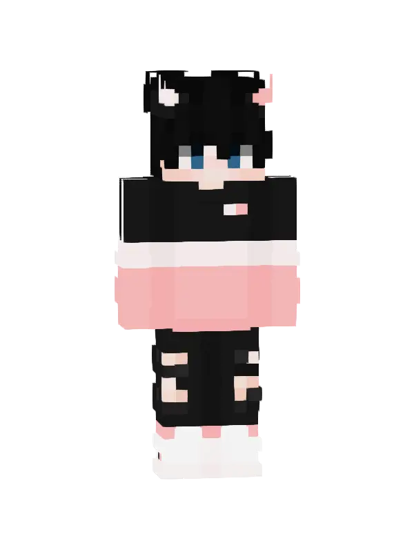 Skin Koci Mistrz w Minecraft to uroczy wygląd z czarnym strojem, białym fartuszkiem i kocimi uszkami, idealny do wyrażenia swojego stylu!