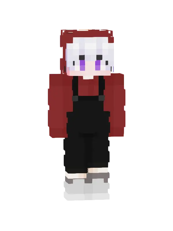 Skin Kawaii w Minecraft to uroczy model z kapturem w czerwonym kolorze, jasnymi oczami i pomarańczowymi spodniami, idealny do wyróżnienia się w grze!