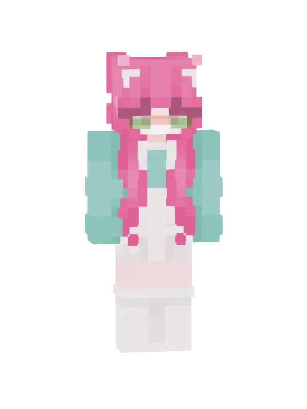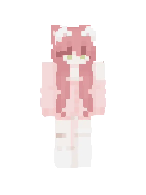 Skin Kawaii Kotka w Minecraft to urocza postać z różowymi włosami, białą bluzą i uroczych uszach. Idealny wybór dla miłośników kawaii!