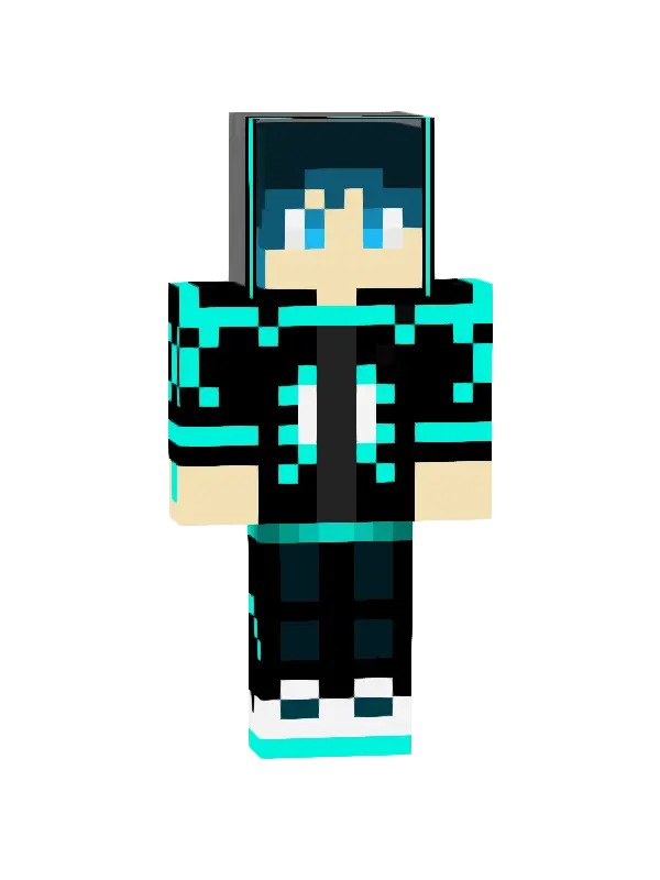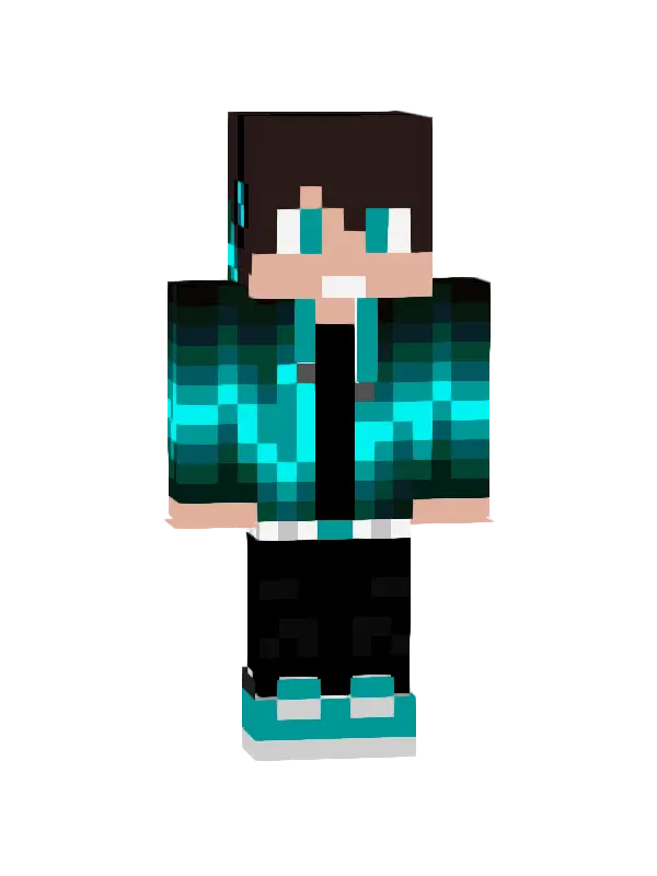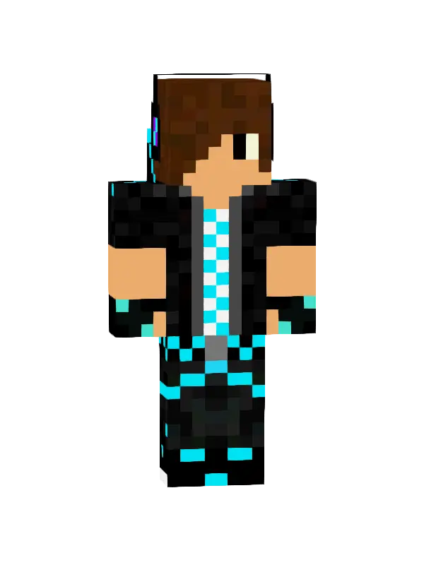 Skin stylowego gracza Minecraft z brązowymi włosami, niebieskimi oczami i modnym czarnym płaszczu. Idealny dla tych, którzy pragną być wyjątkowi w grze!
