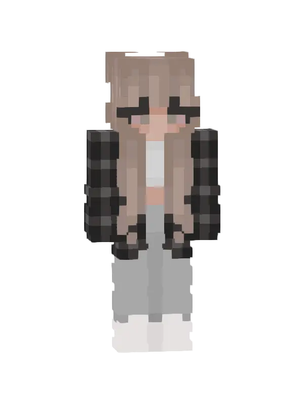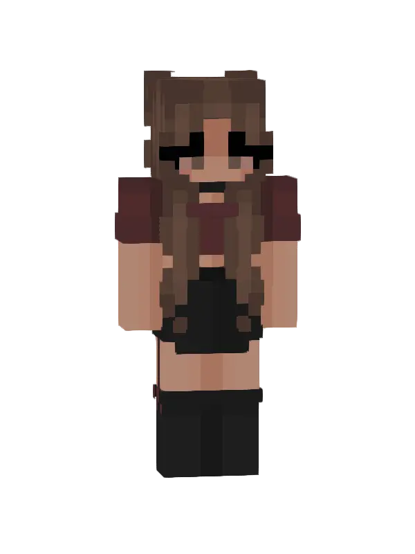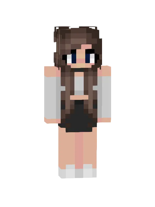 Skin dziewczyny w Minecraft, w białej bluzie bez rękawów, z długimi brązowymi włosami i czarno-białą spódnicą. Idealny dla stylowych graczy!
