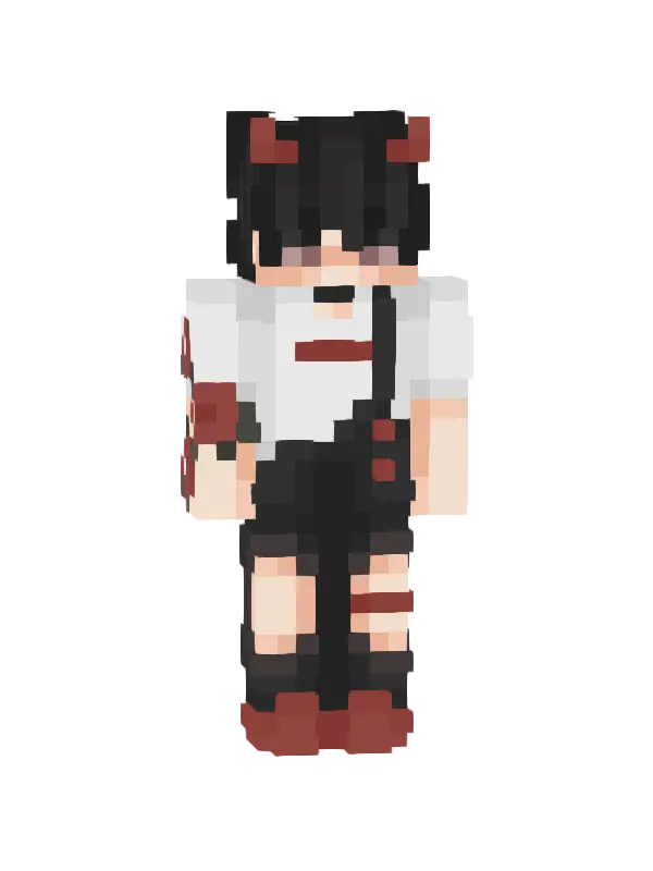 Skin dziewczyny w Minecraft o jasnych oczach i czarnych włosach, ubranej w czerwoną bluzkę i czarną spódniczkę. Idealny dla fanek mody!