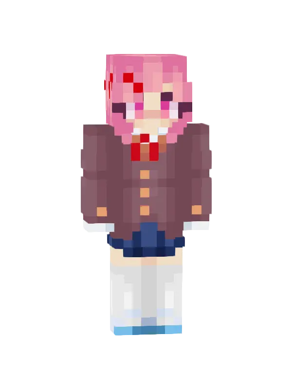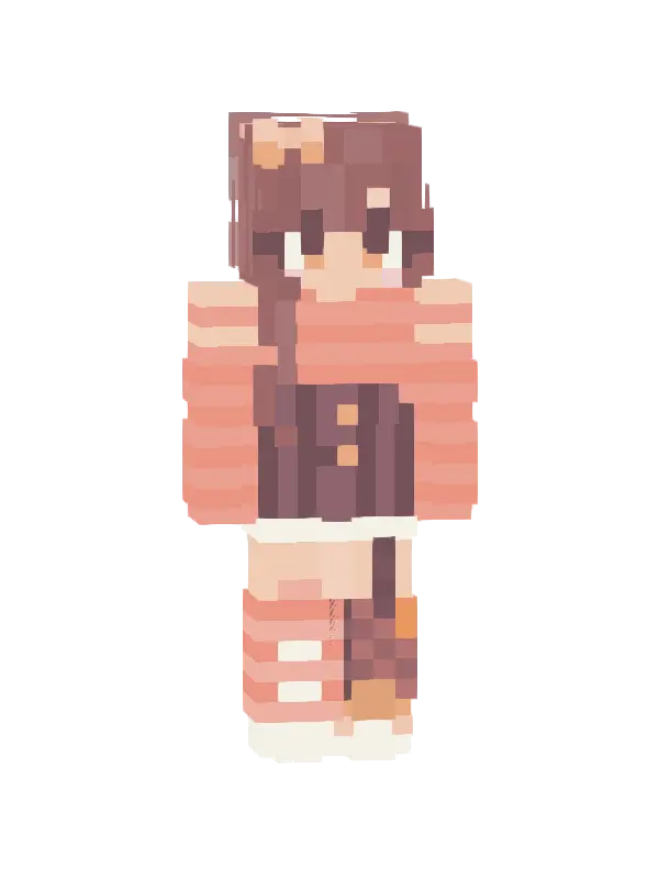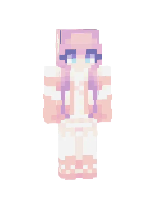 Skin uroczej dziewczyny w Minecraft, z różowymi włosami, jasnym swetrem i niebieskimi szortami. Idealny wybór dla miłośników kawaii stylu!